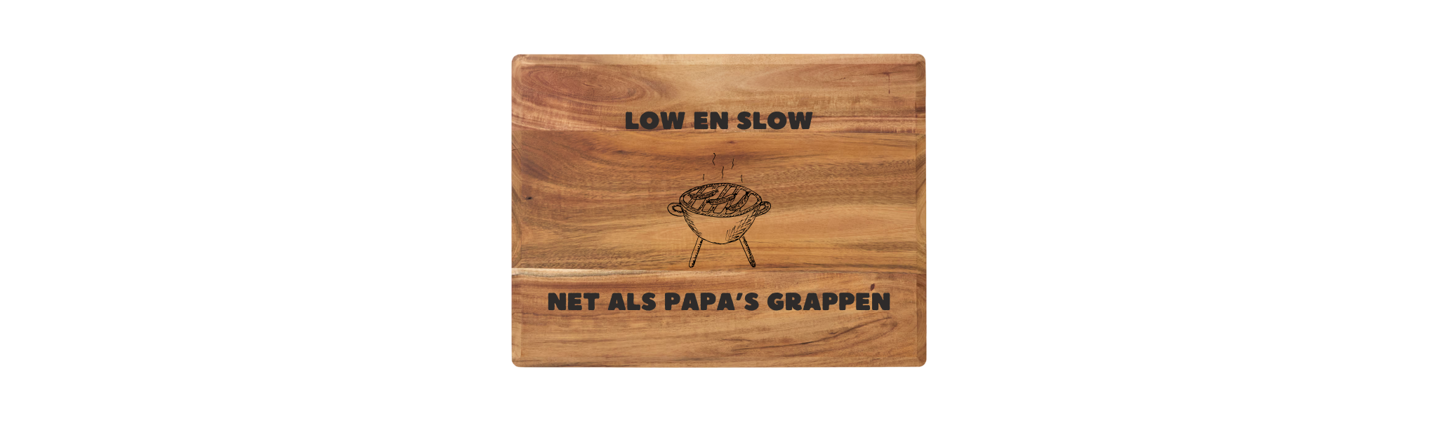 Op zoek naar een bijzonder cadeau of een blikvanger voor je eigen tafel? Ontdek de gepersonaliseerde borrelplanken van Bibelaz – met liefde ontworpen en met precisie gegraveerd in onze studio in Zoetermeer. Elke plank vertelt een verhaal, jullie verhaal. Of je nu een grappige quote, een liefdevolle boodschap of een stoere uitspraak wilt laten graveren: met onze laserbrander zetten we jouw woorden om in een blijvende herinnering. Perfect als cadeau voor verjaardagen, jubilea, housewarmings, bruiloften of als originele bedankjes voor collega’s of klanten. Onze borrelplanken zijn gemaakt van hoogwaardige houtsoorten en hebben elk hun eigen karakter. Geen plank is hetzelfde – net als de mensen voor wie ze bedoeld zijn.
