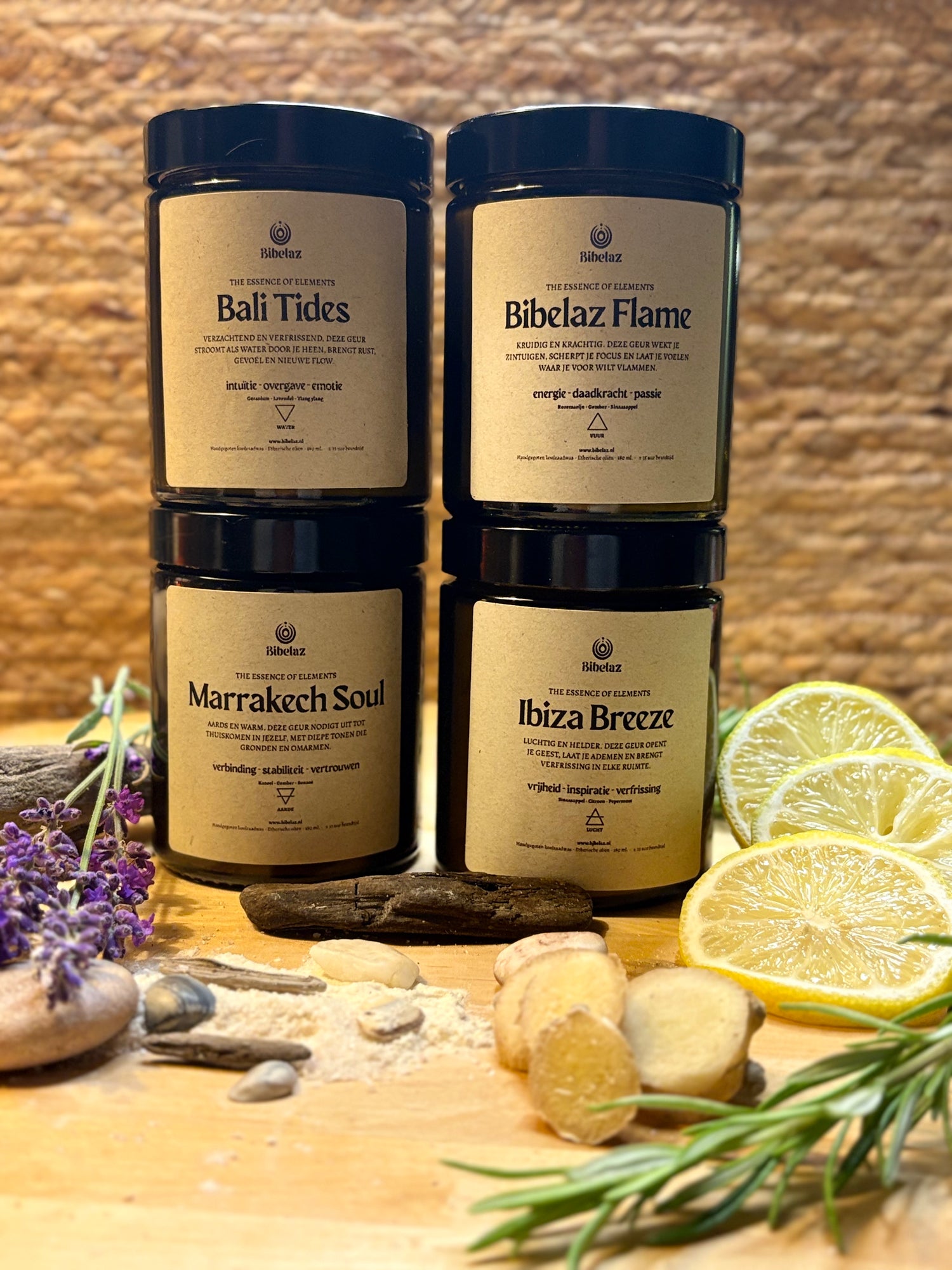 De Essence of Elements kaarsen van Bibelaz combineren duurzame luxe en natuurlijke beleving. Ze worden gegoten in stijlvolle, herbruikbare potten die na gebruik eenvoudig een tweede leven krijgen. De kaarsen zijn gemaakt van schone en plantaardige koolzaadwas, die langer en met minder roet brandt. De zorgvuldig gekozen etherische oliën zorgen voor een pure geurervaring met aromatherapeutisch effect, waardoor elke kaars je verbindt met de essentie van de natuur en haar elementen.